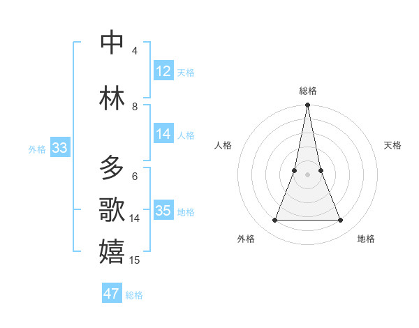 中林 多歌嬉さんの総格は47画の5点!