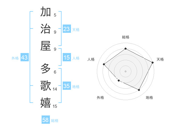 加治屋 多歌嬉さんの天格は23画の5点