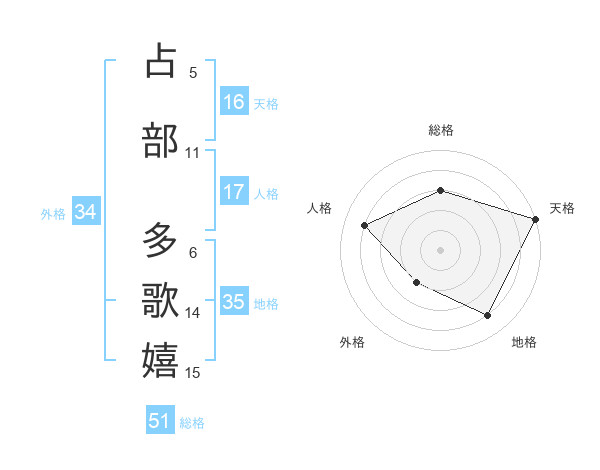 占部 多歌嬉さんを姓名の画数から五運を鑑定
