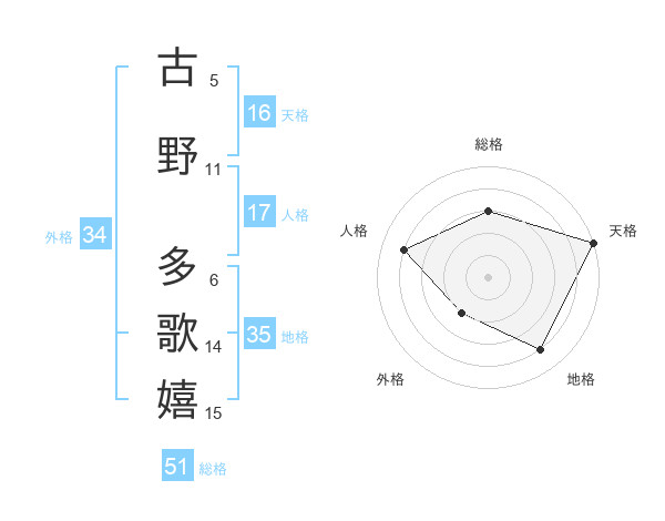 古野 多歌嬉さんを姓名の画数から五運を鑑定