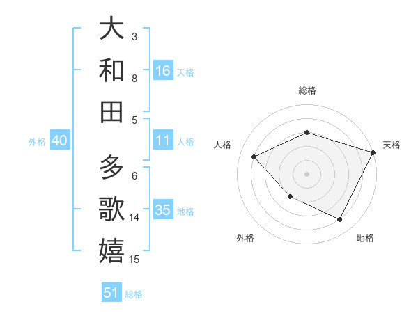 大和田 多歌嬉さんを姓名の画数から五運を鑑定