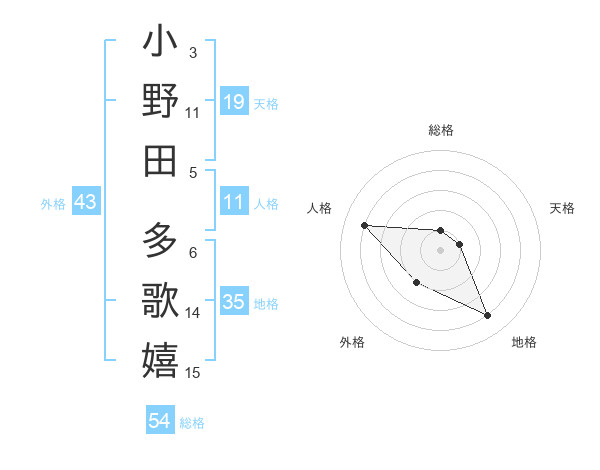 小野田 多歌嬉さんを姓名の画数から五運を鑑定