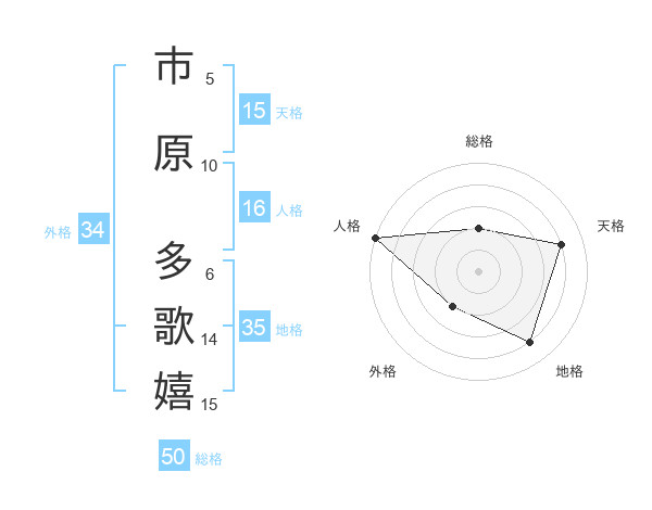 市原 多歌嬉さんの総格は50画の2点!