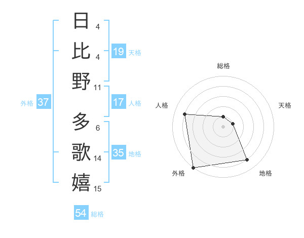 日比野 多歌嬉さんを姓名の画数から五運を鑑定