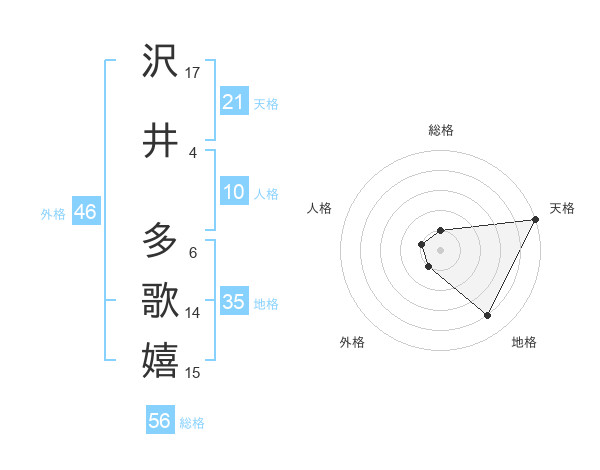 沢井 多歌嬉さんを姓名の画数から五運を鑑定