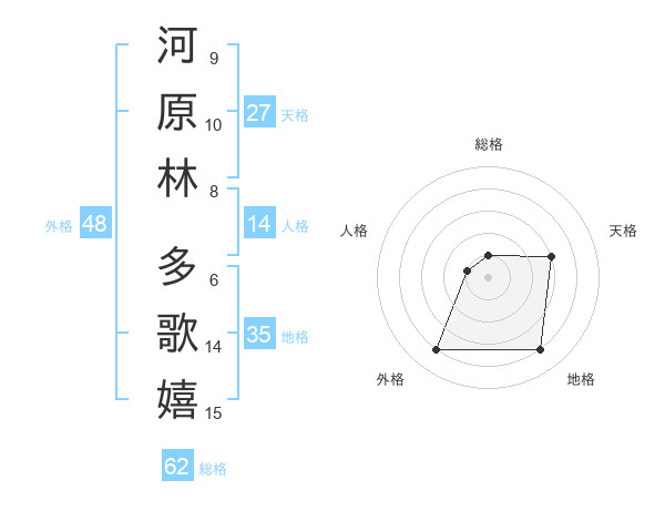 河原林 多歌嬉さんを姓名の画数から五運を鑑定