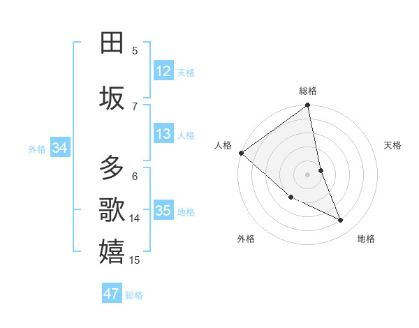 田坂 多歌嬉さんの総格は47画の5点!
