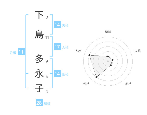 下鳥 多永子さんを姓名の画数から五運を鑑定