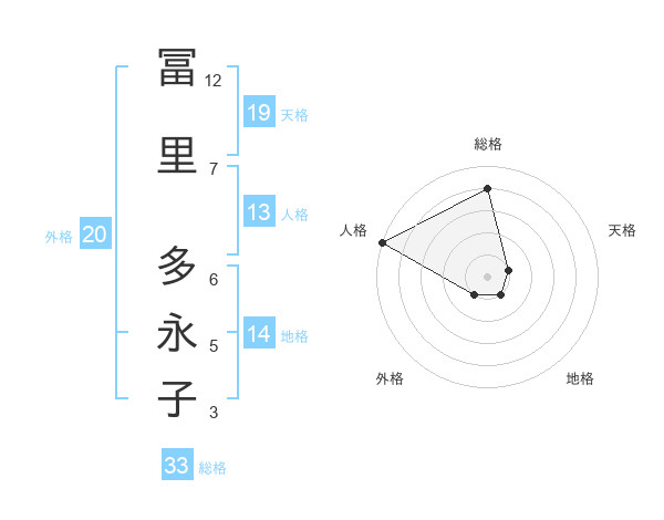 冨里 多永子さんを姓名の画数から五運を鑑定