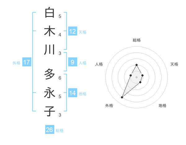 白木川 多永子さんを姓名の画数から五運を鑑定
