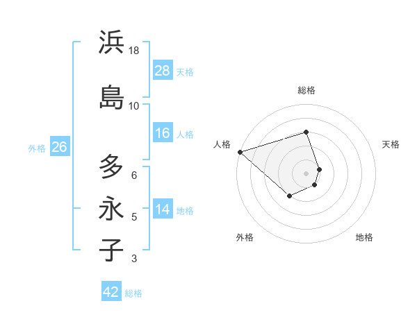 浜島 多永子さんを姓名の画数から五運を鑑定