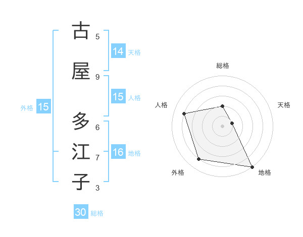 古屋 多江子さんの総格は30画の2点!