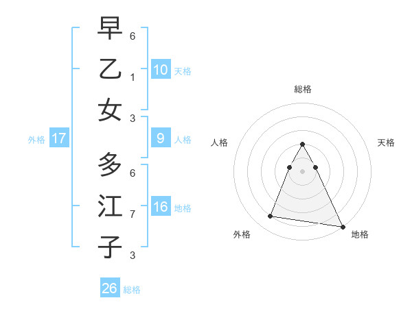早乙女 多江子さんの総格は26画の2点!