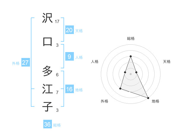 沢口 多江子さんを姓名の画数から五運を鑑定