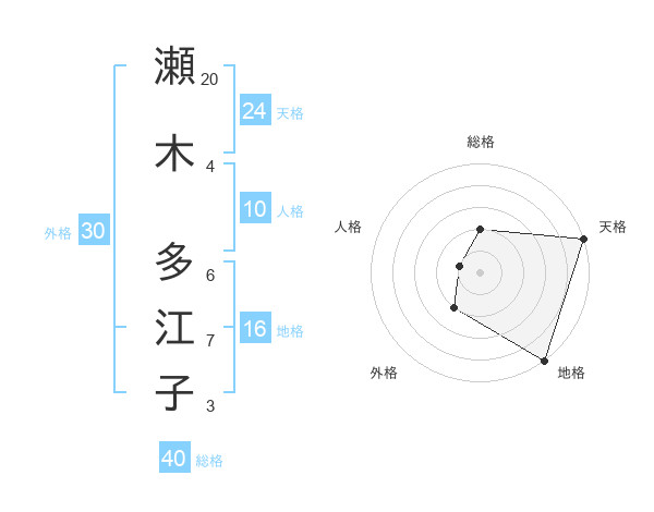 瀬木 多江子さんの天格は24画の5点!