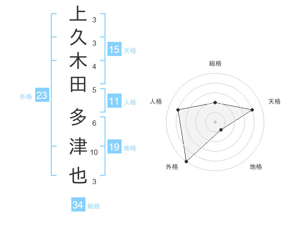 上久木田 多津也さんを姓名の画数から五運を鑑定