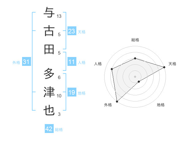 与古田 多津也さんを姓名の画数から五運を鑑定