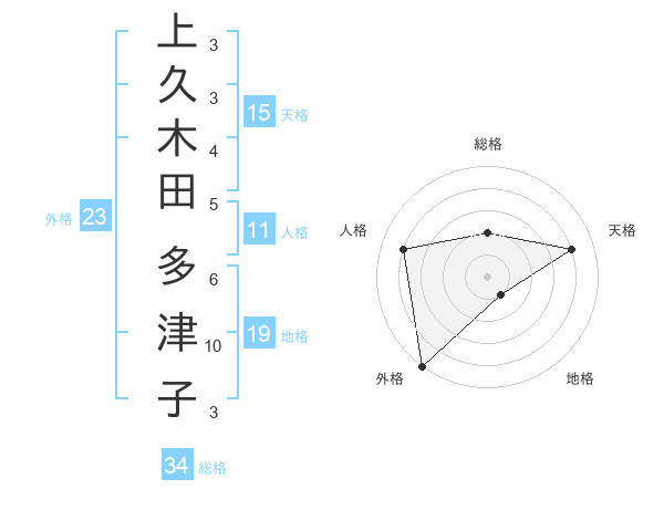 上久木田 多津子さんを姓名の画数から五運を鑑定