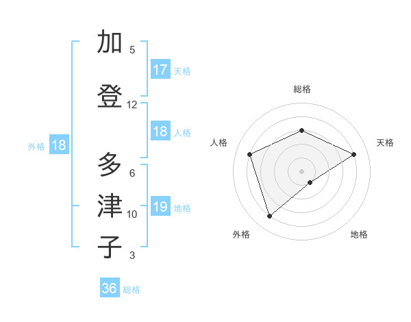 加登 多津子さんの天格は17画の4点!