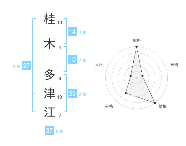 桂木 多津江さんを姓名の画数から五運を鑑定