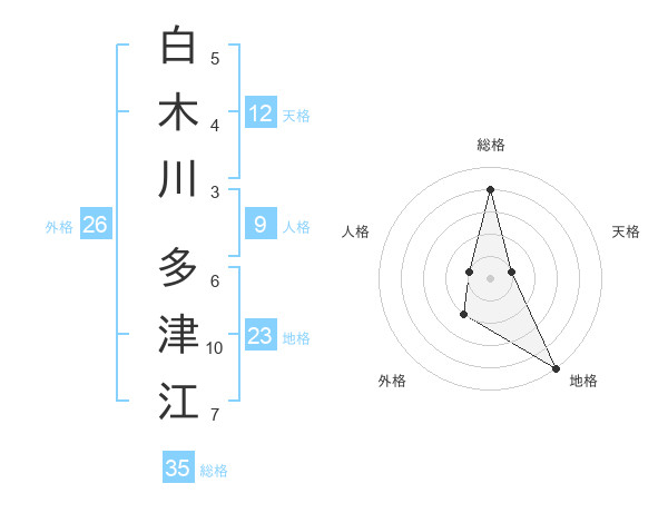 白木川 多津江さんを姓名の画数から五運を鑑定