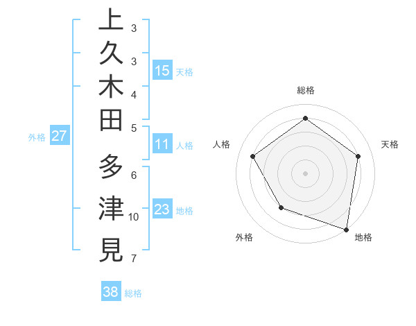 上久木田 多津見さんを姓名の画数から五運を鑑定