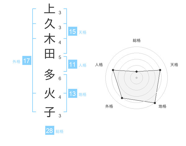 上久木田 多火子さんを姓名の画数から五運を鑑定