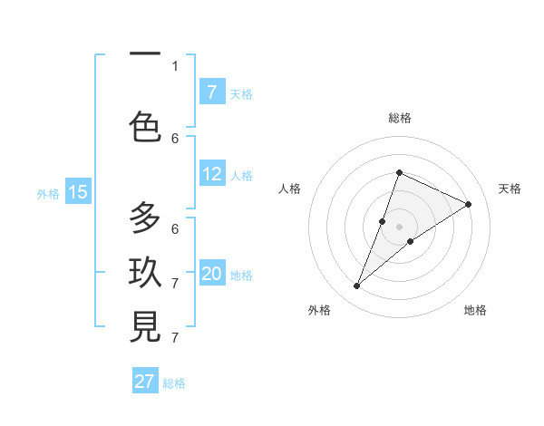 一色 多玖見さんを姓名の画数から五運を鑑定