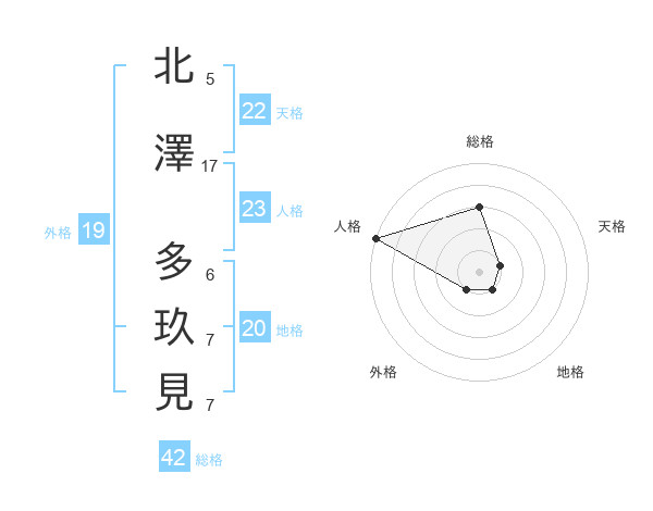 北澤 多玖見さんを姓名の画数から五運を鑑定