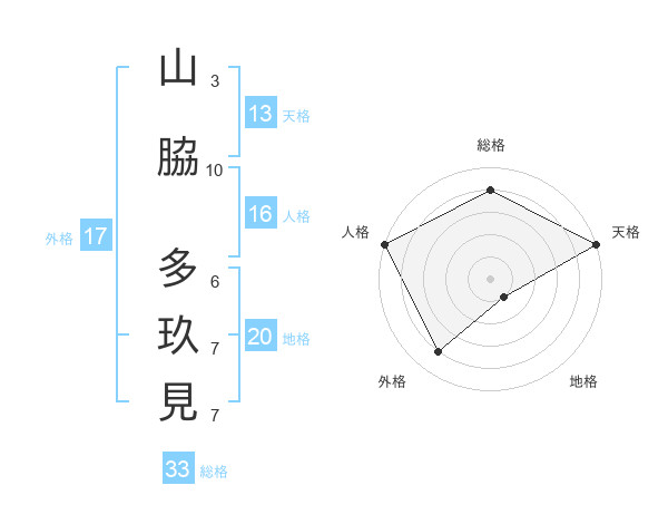 山脇 多玖見さんを姓名の画数から五運を鑑定