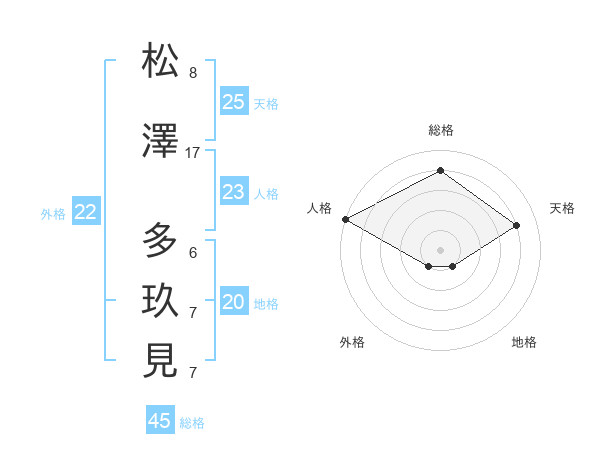 松澤 多玖見さんを姓名の画数から五運を鑑定