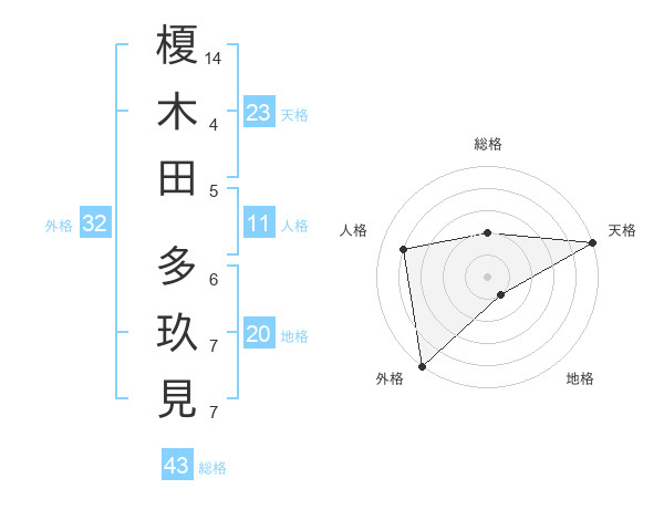 榎木田 多玖見さんを姓名の画数から五運を鑑定