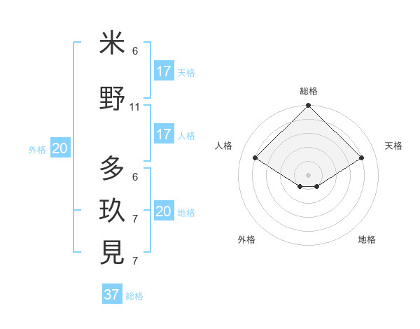 米野 多玖見さんの総格は37画の5点!