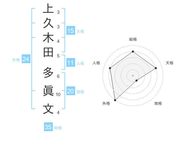 上久木田 多眞文さんの総格は35画の4点!
