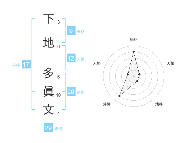 下地 多眞文さんを姓名の画数から五運を鑑定