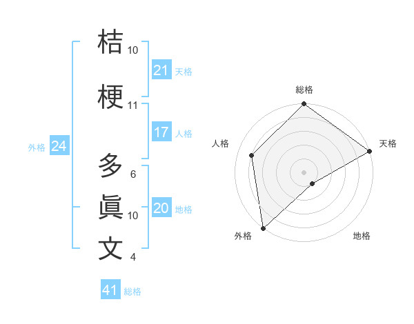桔梗 多眞文さんを姓名の画数から五運を鑑定