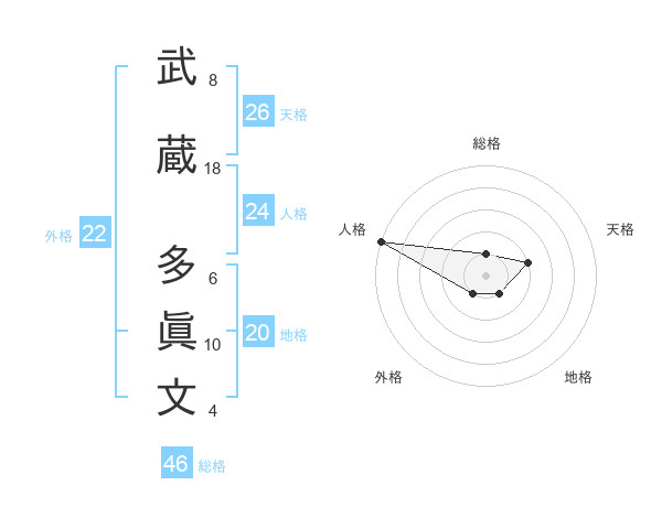 武蔵 多眞文さんを姓名の画数から五運を鑑定