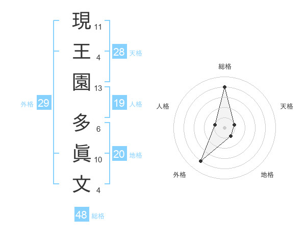現王園 多眞文さんを姓名の画数から五運を鑑定