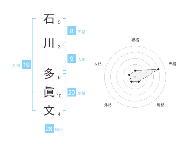 石川 多眞文さんの総格は28画の1点