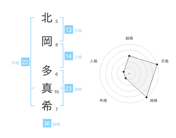 北岡 多真希さんの天格は13画の5点!
