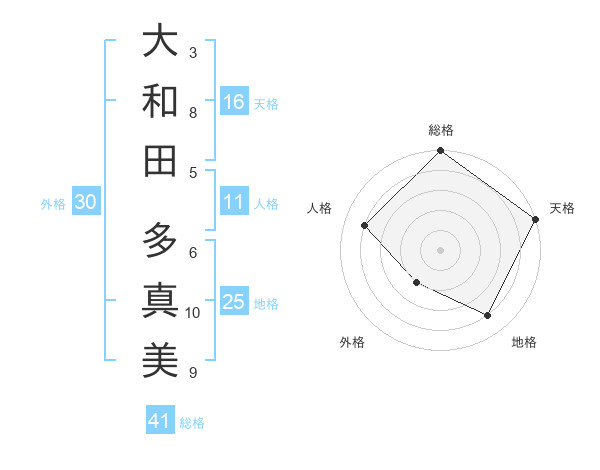 大和田 多真美さんの総格は41画の5点!