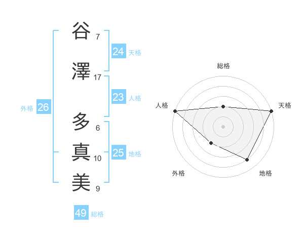 谷澤 多真美さんを姓名の画数から五運を鑑定