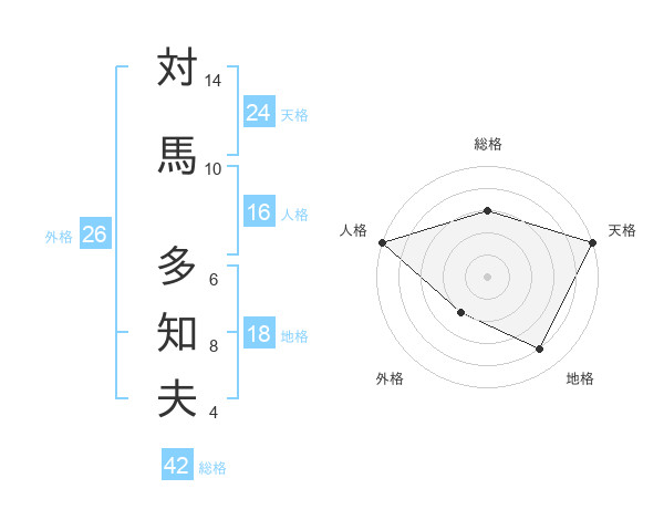 対馬 多知夫さんの天格は24画の5点!