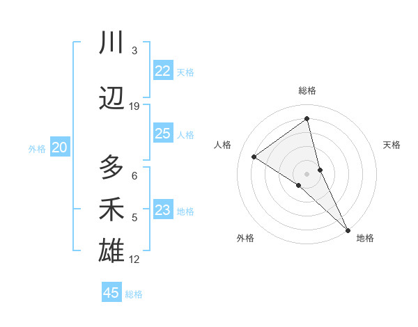川辺 多禾雄さんを姓名の画数から五運を鑑定
