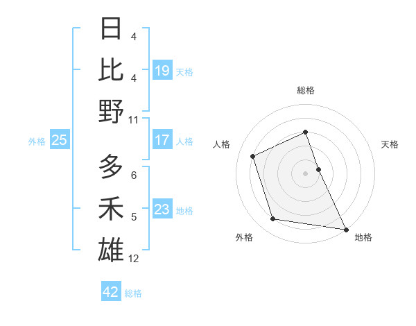 日比野 多禾雄さんを姓名の画数から五運を鑑定