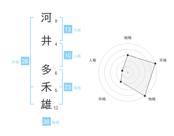 河井 多禾雄さんの天格は13画の5点!
