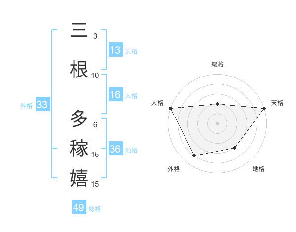 三根 多稼嬉さんを姓名の画数から五運を鑑定