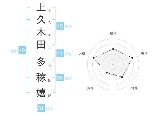 上久木田 多稼嬉さんの総格は51画の3点