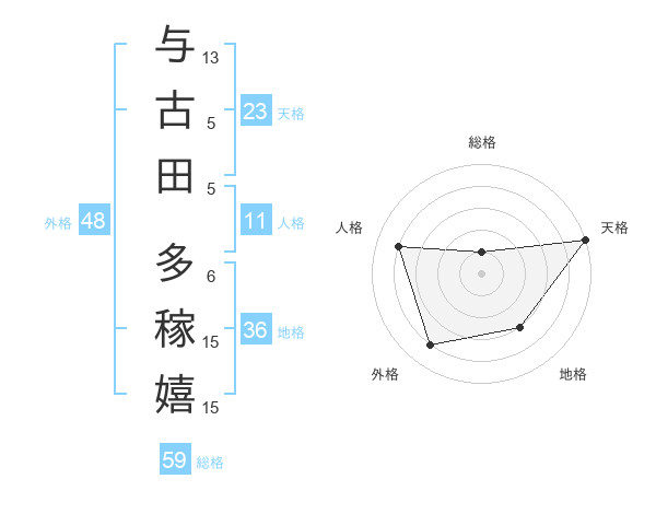 与古田 多稼嬉さんを姓名の画数から五運を鑑定