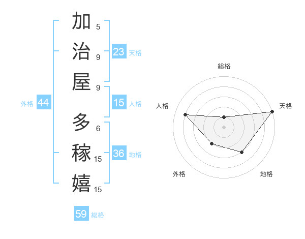 加治屋 多稼嬉さんを姓名の画数から五運を鑑定
